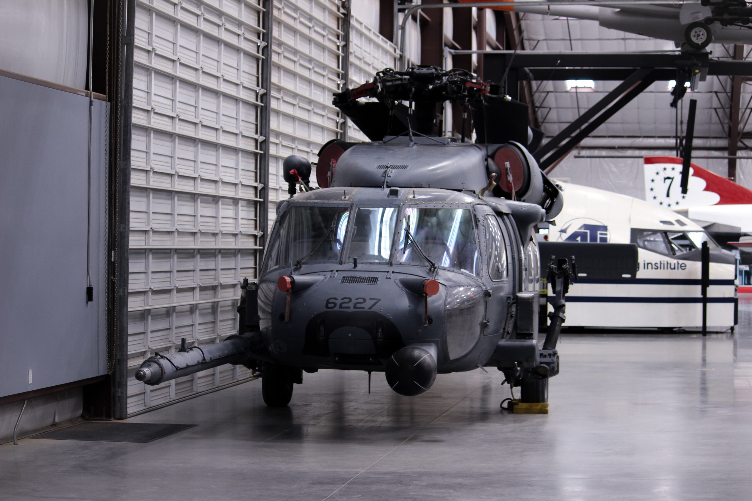 The displayed HH-60G Pave Hawk was manufactured in 1990 with construction number 70-1551. It was accepted by the U.S. Air Force Reserve Command (AFRC) and registered as 90-26227 the next year. During the 1990s, 90-26227 or commonly known as 227 was a workhorse for AFRC and supported Operations Northern Watch, Southern Watch, and training missions in South America. In support of the Global War on Terror (GWT), it was flown heavily during Operations Iraqi Freedom and Enduring Freedom. In 2005, 227, assigned to the 305th Rescue Squadron, Davis-Monthan AFB, Arizona, was the helicopter utilized for the rescue and transport of Navy Seal Marcus Lutrell, “Lone Survivor” of Operation Red Wings. Additionally, 227 was flown in support of natural disasters around the world. It was retired in April 2025 and loaned to the Pima Air & Space Museum to exhibit.