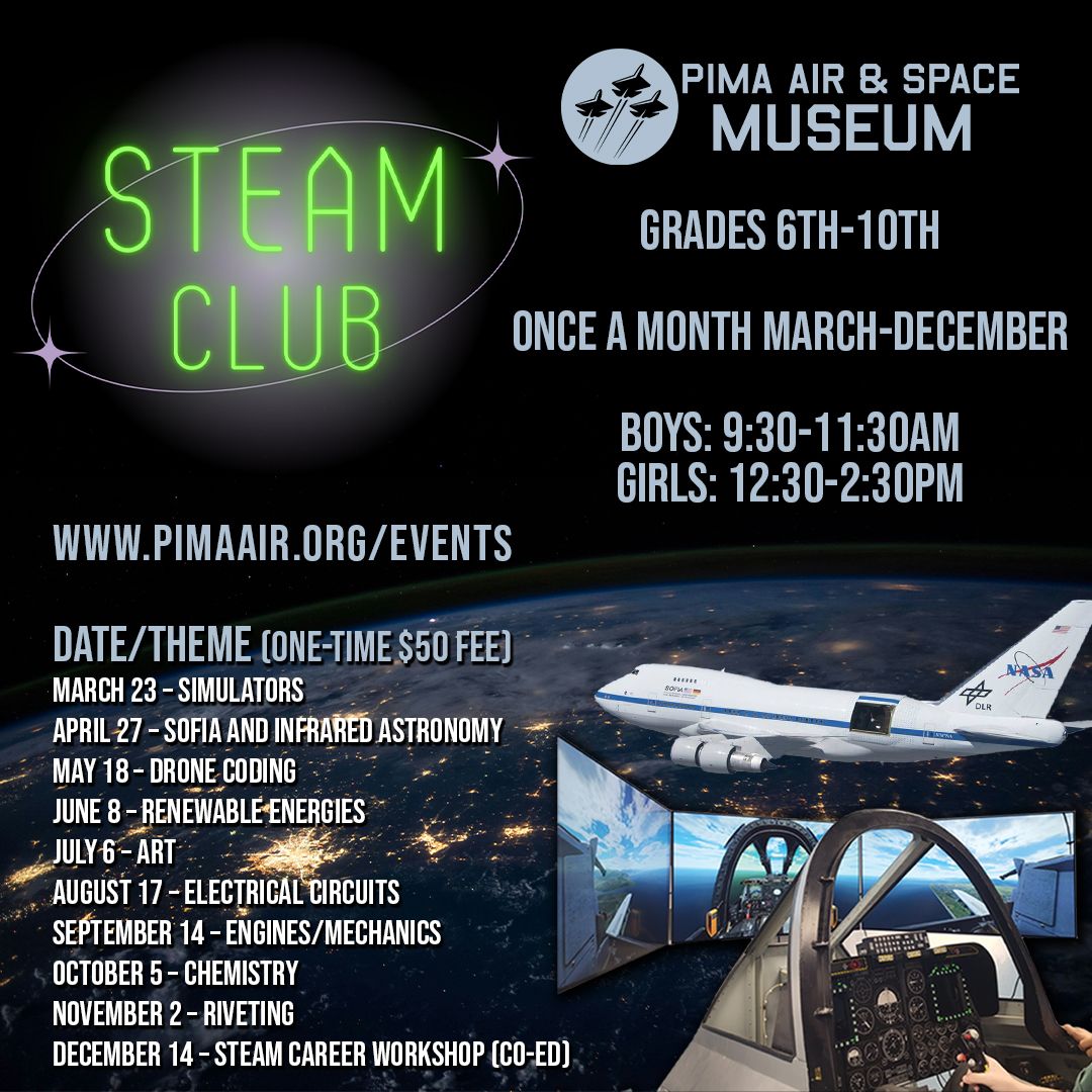 Pima Air and Space Museum is excited to offer a Girls STEAM Club and Boys STEAM Club for kids in grades 6th-10th interested in all things STEAM!