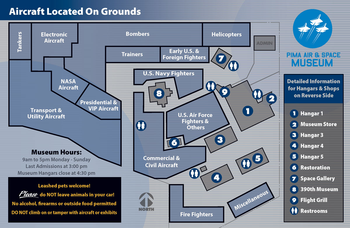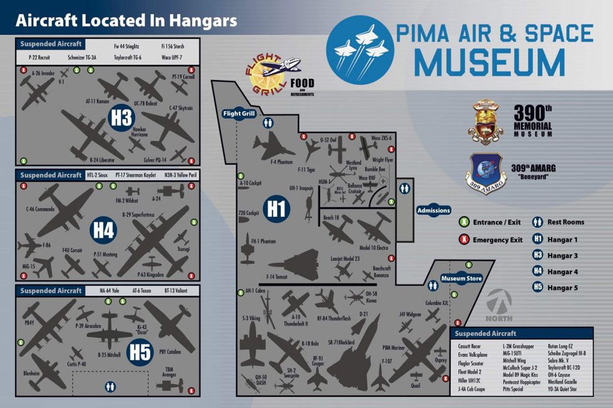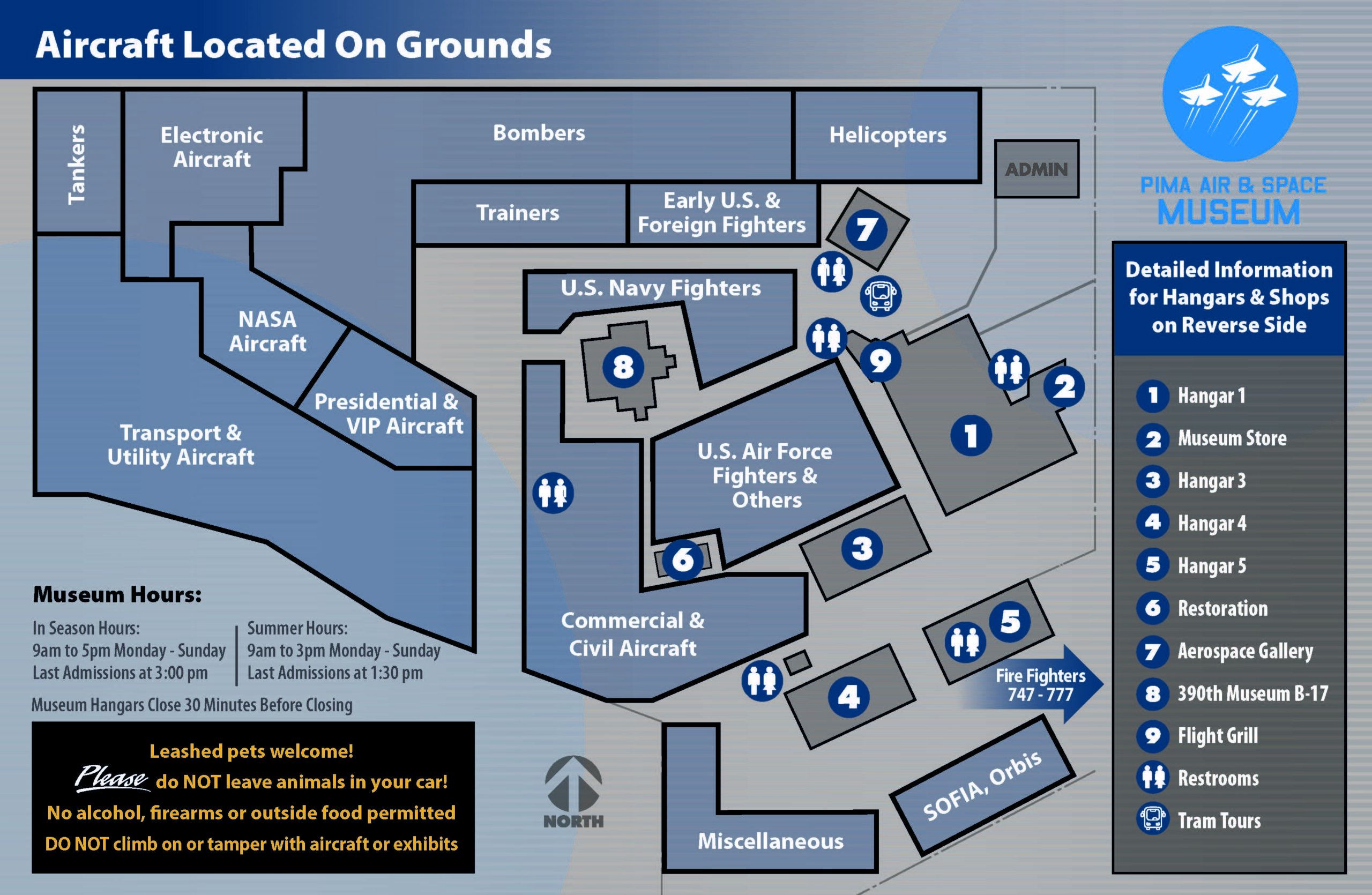 Plan ahead and make the most of your visit to the Pima Air & Space Museum! Review the directions and hours of operation. Check on pricing for General Admission. Check out refueling options at the Flight Grill. Download your own digital copy of the map of the museum grounds and hangars and learn about tour options.