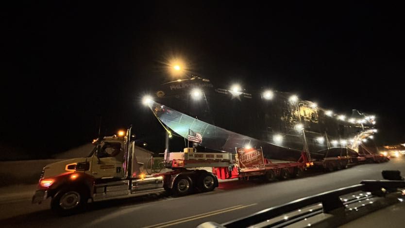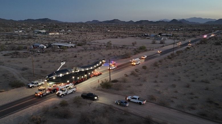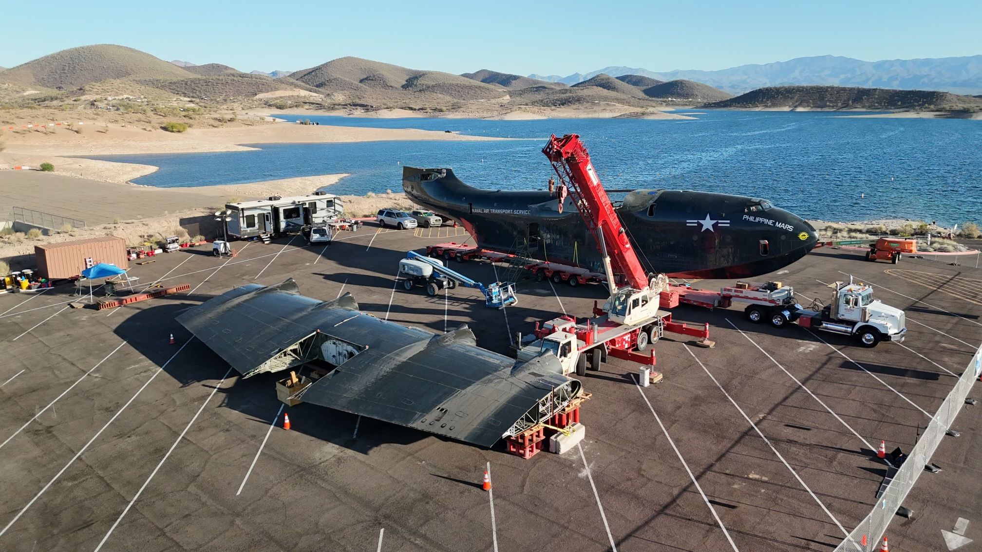 When the weather permitted on February 12th, Philippine Mars was pulled up the boat ramp to be prepared for the final leg of the journey to museum immortalization. A pure flying boat without landing gear, Mars aircraft need large bodies of water to land. It was dismantled at Lake Pleasant for trucks to haul it down to Tucson, Arizona. The fuselage arrived to Pima Air & Space Museum just before midnight on May, 16th and will be reassembled for display.