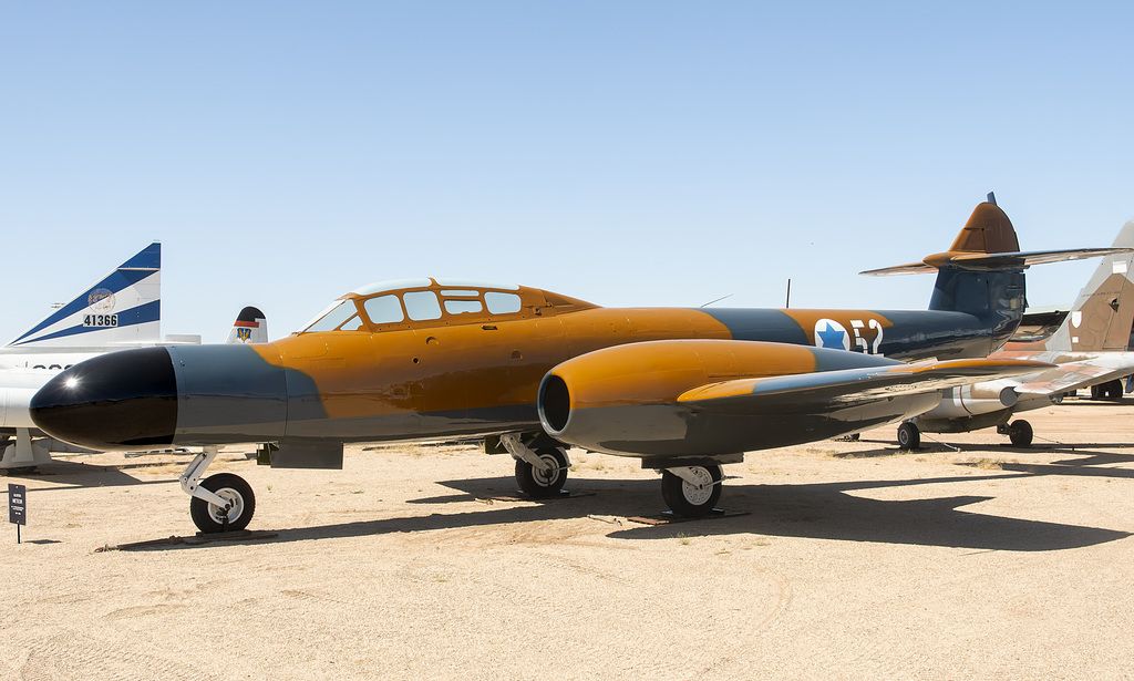 The Gloster Meteor was developed during World War II and was the only jet fighter to see operational service with the Allied Forces during the war. Development of the Meteor began in 1940 with the first flights in 1943. By the middle of 1944 a small number of Meteors were operational with the RAF’s Number 616 Squadron. They were used to intercept the German V-1 flying bombs and at least 14 Buzz Bombs were shot down by Meteors. Development of the Meteor continued after World War II and later versions of the aircraft served with the RAF until 1962.