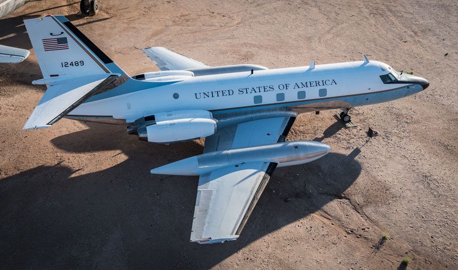 In 1956 the U.S. Air Force asked the aviation industry to submit proposals for low cost jet aircraft to replace its fleet of propeller driven utility transports and twin-engined crew trainers. Lockheed saw the potential for an aircraft to meet both the military requirement and the then emerging business jet market. The result was the four-engine JetStar. Initial proposals for a two-engine aircraft had to be modified for four smaller engines when larger British made engines were rejected by the Air Force. Mounting the engines on the rear fuselage reduced cabin noise and lowered the risk of foreign object damage to the engines. Most of the JetStars in military service were used for VIP transport in both the Presidential Fleet and for senior military commanders. A total of 204 JetStars were built for military and civil customers.